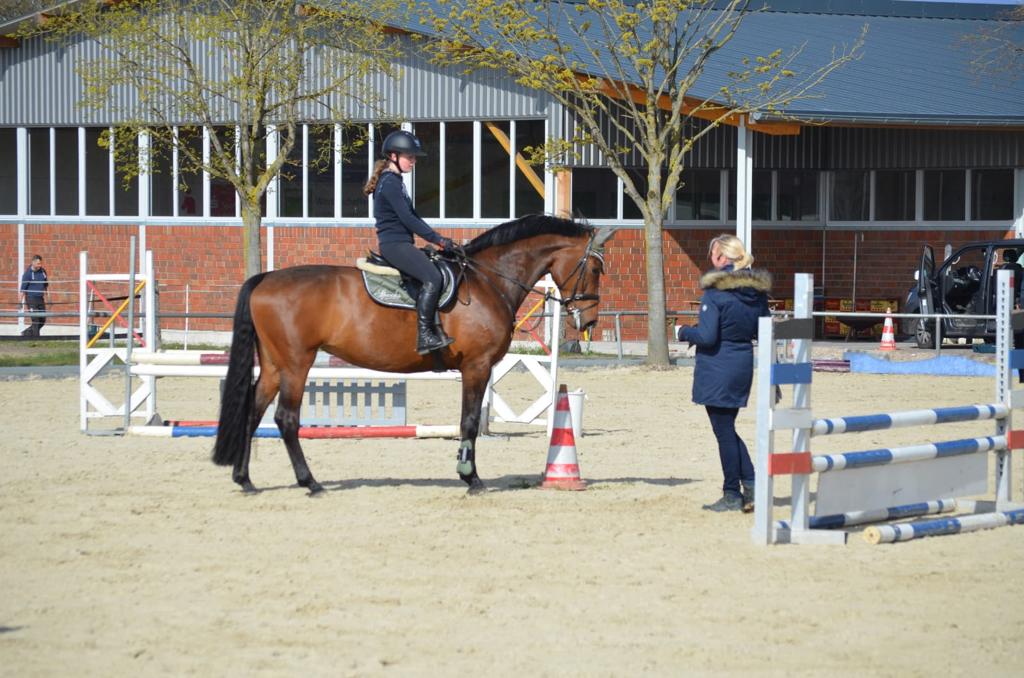 Vom 23. – 25.04. besuchte uns Renate Wasing Schumann endlich wieder auf unserer Reitanlage. Zwölf Reiter mit 13 Pferden hatten sich für den diesjährigen Springlehrgang angemeldet und waren super motiviert, endlich wieder durch den Springparcours zu reiten.