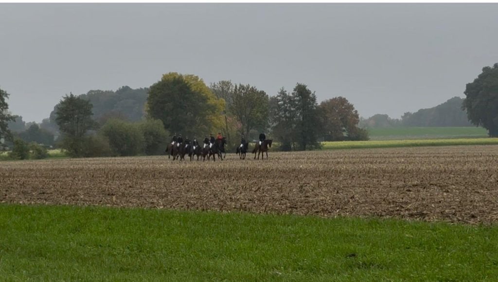 Nach dem gemeinsamen Frühstück – vorbereitet von den amtierenden Fuchsmajorinnen Liesbeth Jelitto und Emma Sombrowksi – starteten die Gruppen gegen 10 Uhr in Richtung Gettrup. Insgesamt ritten 33 Pferde in vier Gruppen, begleitet von einer Kutsche und mehreren Drahteseln.